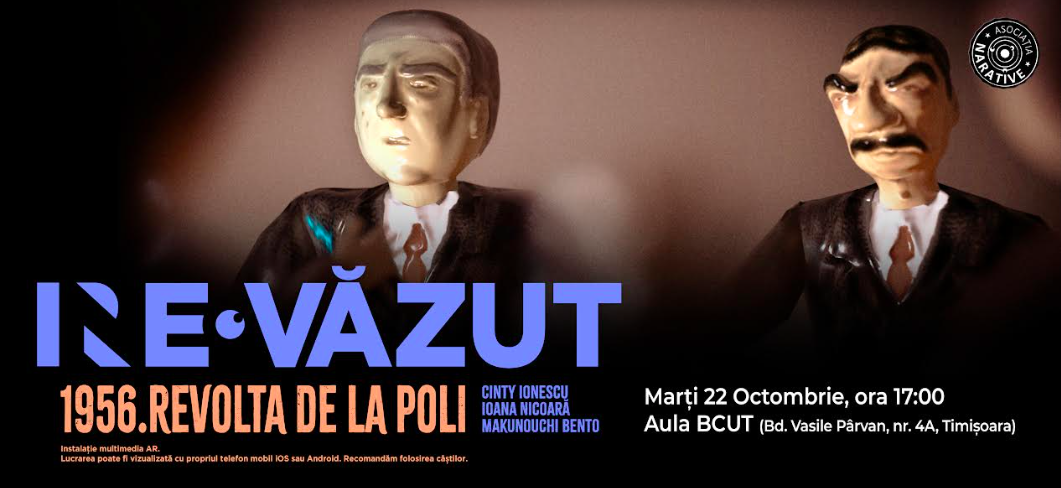 Pornind de la arhiva de istorie orală coordonată de scriitoarea Smaranda Vultur, un grup multidisciplinar de artiști recontextualizează istoricul cantinei Universității Politehnica Timișoara, evocând rolul său de spațiu subversiv în cursul revoltelor anticomuniste ale studenților timișoreni din anul 1956. o nouă bornă a memoriei în spațiul public, expoziția itinerantă “Ne/Revăzut”, un proiect digital multimedia, cu sunet și animații 3D în realitate augmentată, va fi vernisată joi, 22 octombrie, de la ora 17.00, la Biblioteca Centrală Universitară „Eugen Todoran” din Timișoara.